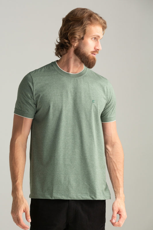 CAMISETA MOLINE COM GOLA E PUNHO VERDE