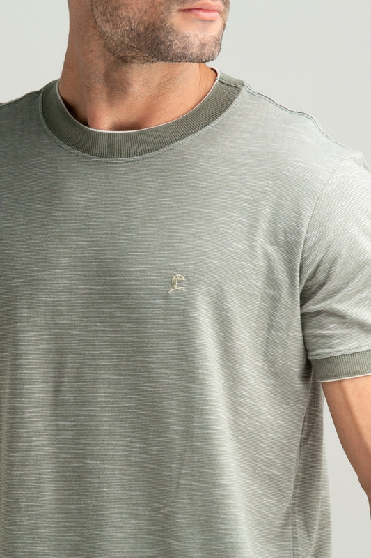 CAMISETA MALHA DIRT COM GOLA E PUNHO VERDE