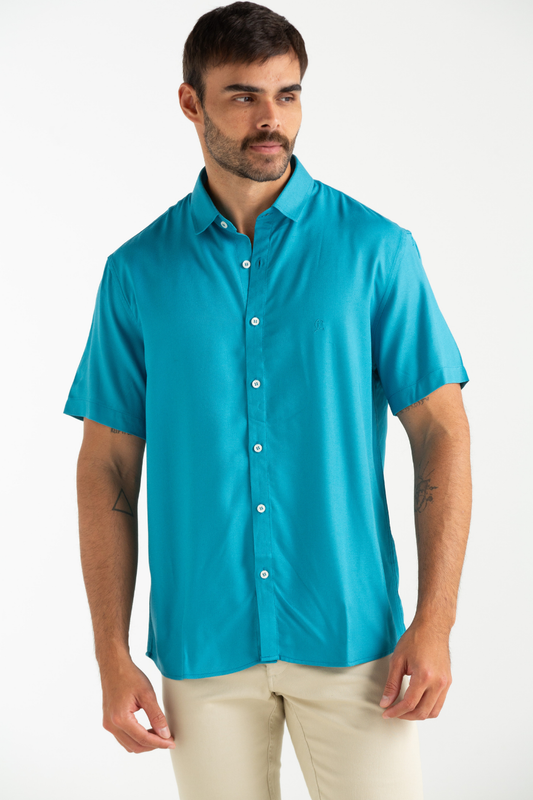 CAMISA MANGA CURTA TEC. LISO VIKING AZUL PETROLEO
