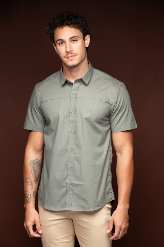 CAMISA DE TECIDO MAZZINI COM PALA VERDE MUSGO