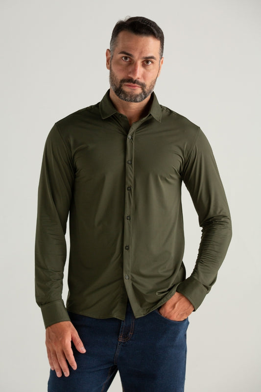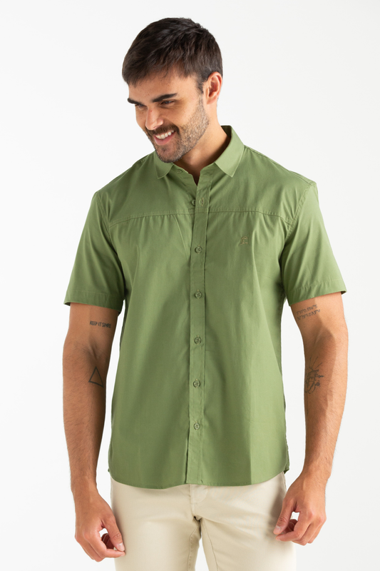 CAMISA MANGA CURTA TEC. LISO VIKING VERDE OLIVA