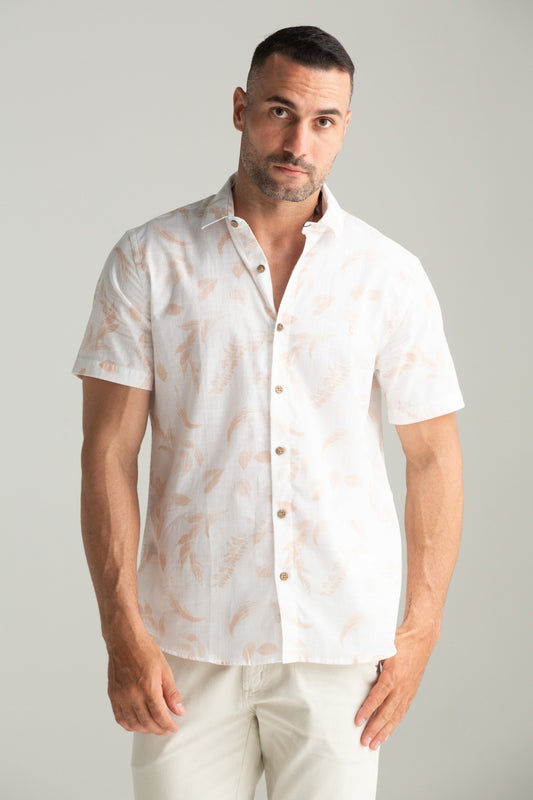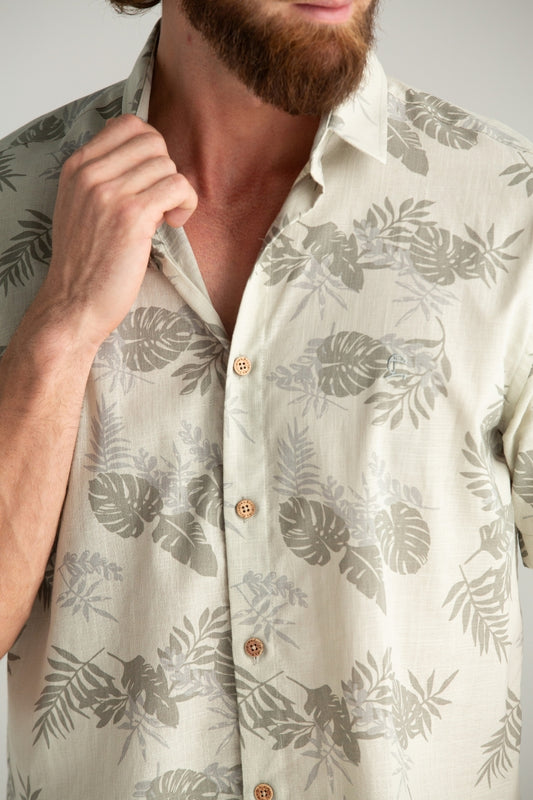 CAMISA LINHO MISTO ESTAMPADO BEGE