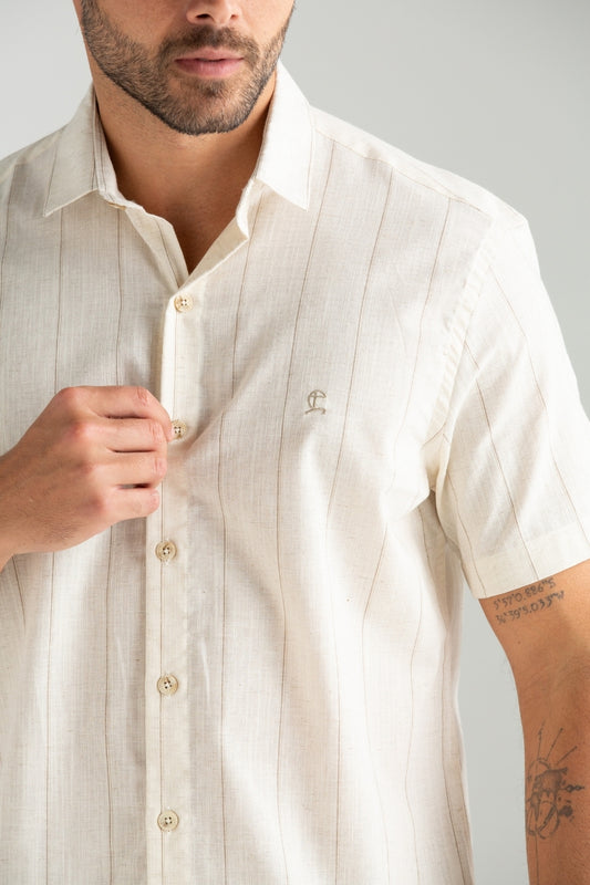 CAMISA LINHO MISTO LISTRADO CAQUI