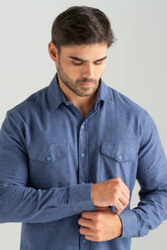 CAMISA DE TECIDO FIL A FIL AZUL PETROLEO