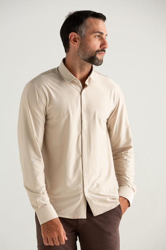 CAMISA MANGA LONGA TECH DOBBY CAQUI