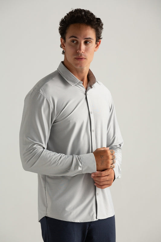 CAMISA MANGA LONGA TECH DOBBY CINZA