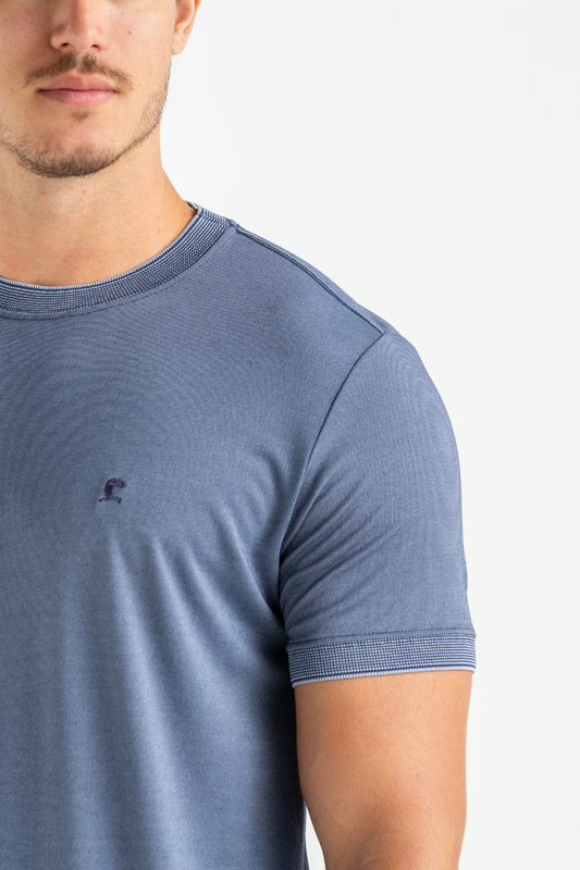 CAMISETA MALHA AGRADO COM GOLA E PUNHO MARINHO