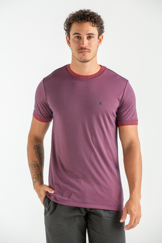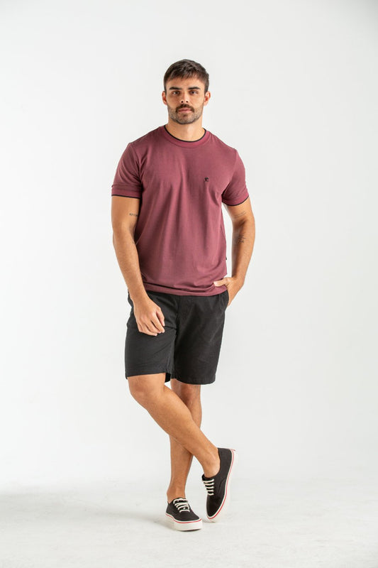 CAMISETA ROCKET MODAL COM GOLA E PUNHO VINHO