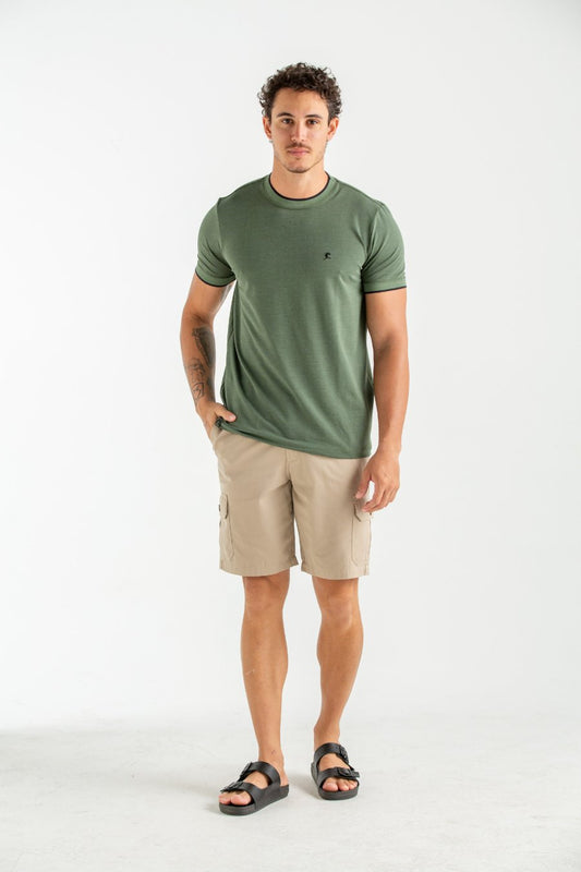CAMISETA MALHA AGRADO COM GOLA E PUNHO VERDE