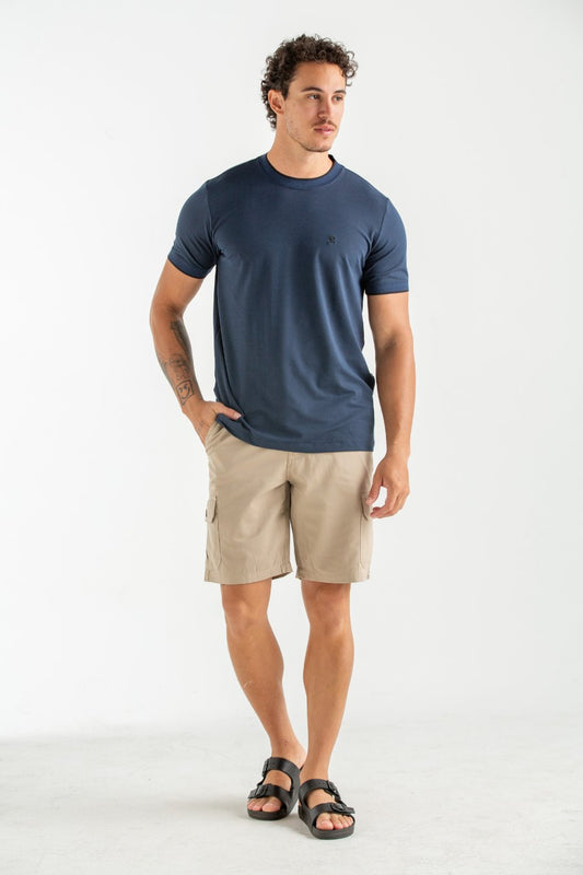 CAMISETA ROCKET MODAL COM GOLA E PUNHO MARINHO