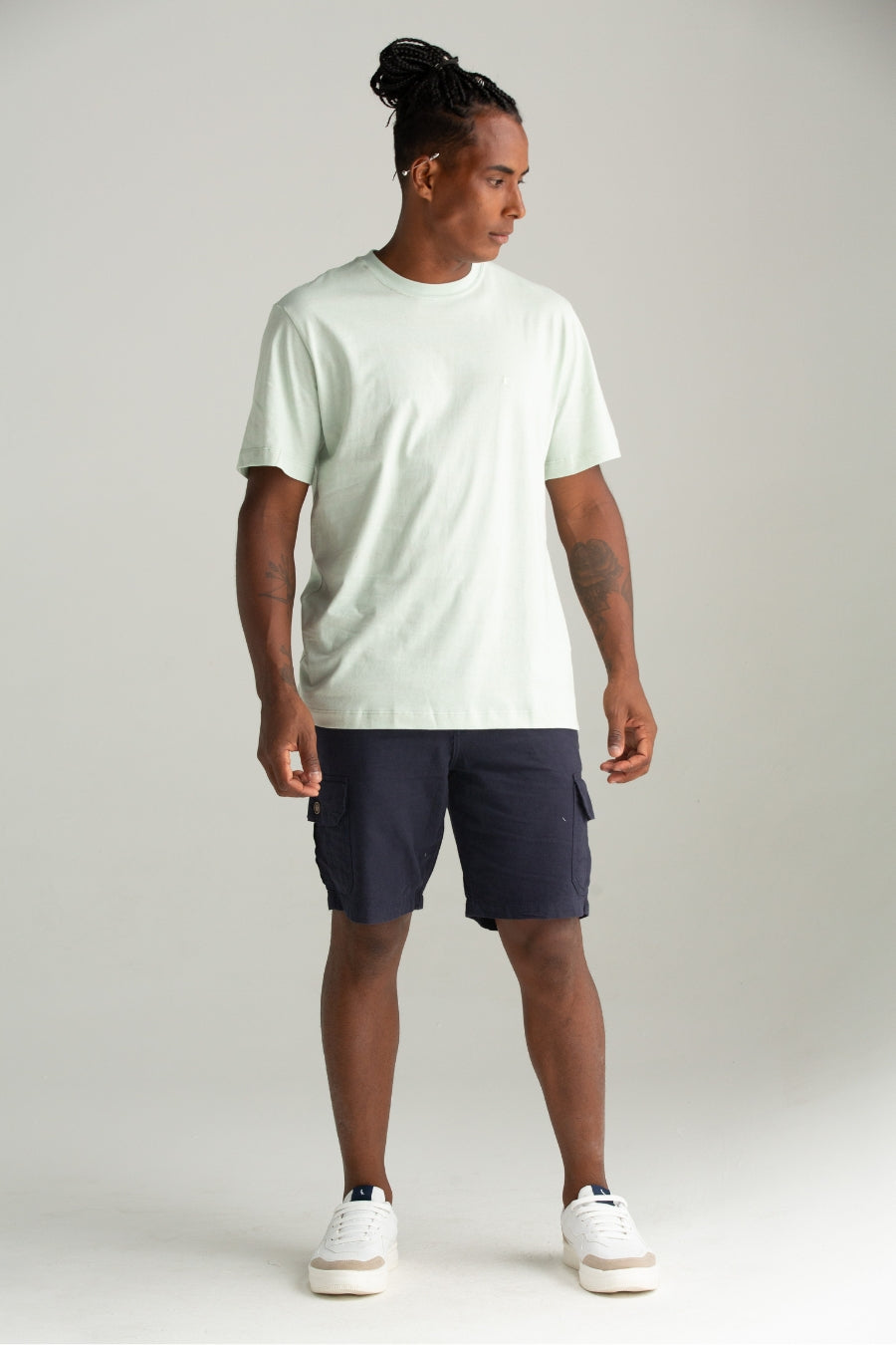 Bermuda cargo confeccionada em tecido maquinetado, que traz textura sofisticada e visual diferenciado. Com caimento leve e estrutura confortável, combina praticidade dos bolsos utilitários com um toque de elegância sutil. Ideal para quem valoriza peças versáteis, que transitam bem entre o casual e o urbano com estilo.