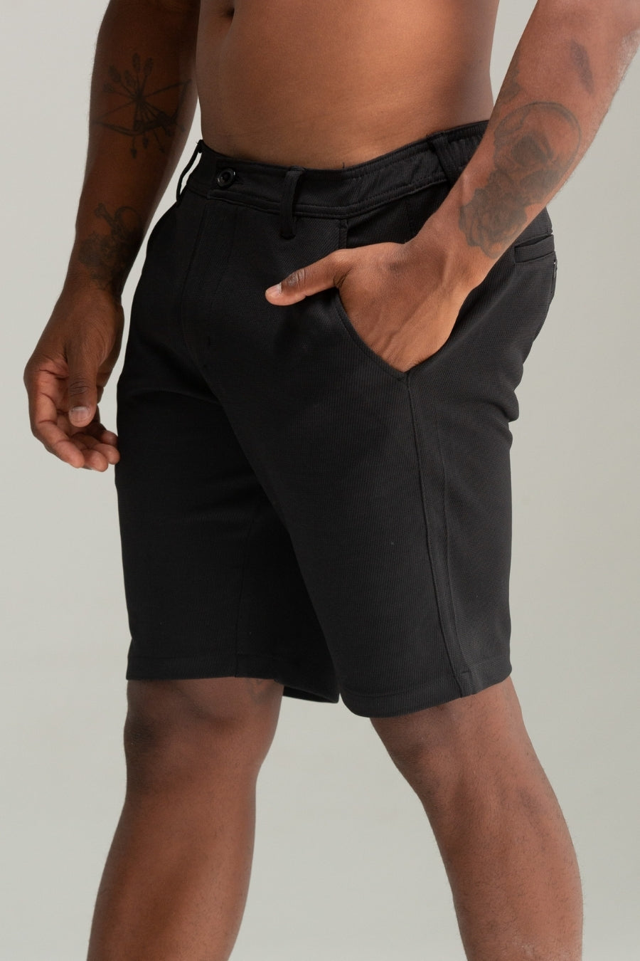 Bermuda Tech em tecido texturizado, com toque moderno e acabamento sofisticado. Confeccionada com elastano, oferece liberdade de movimento e conforto ao longo do dia. O cós com elástico garante ajuste perfeito ao corpo, mesmo sem cordão aparente, mantendo o visual limpo e versátil. Ideal para quem busca funcionalidade com estilo em uma peça leve e urbana.
