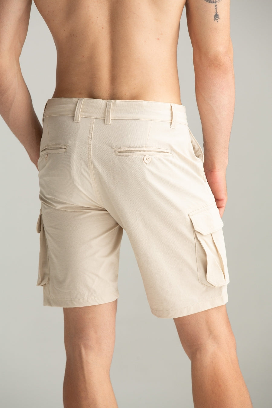 Bermuda cargo em tecido ultraleve e refrescante, com toque que remete às bermudas água. Ideal para os dias mais quentes, oferece respirabilidade, secagem rápida e máximo conforto. Com bolsos funcionais e visual despojado, é perfeita para quem busca praticidade e estilo em um só produto.