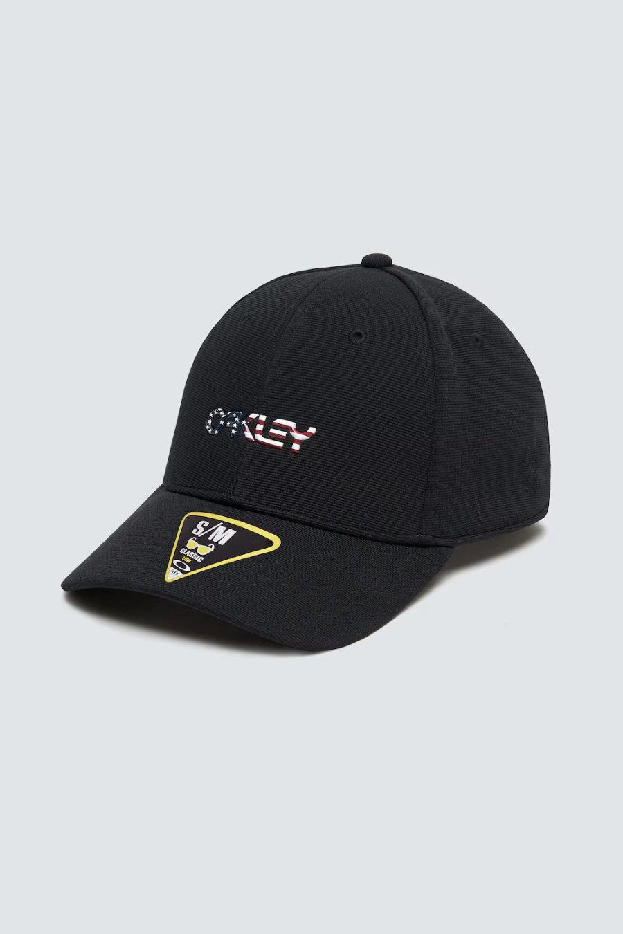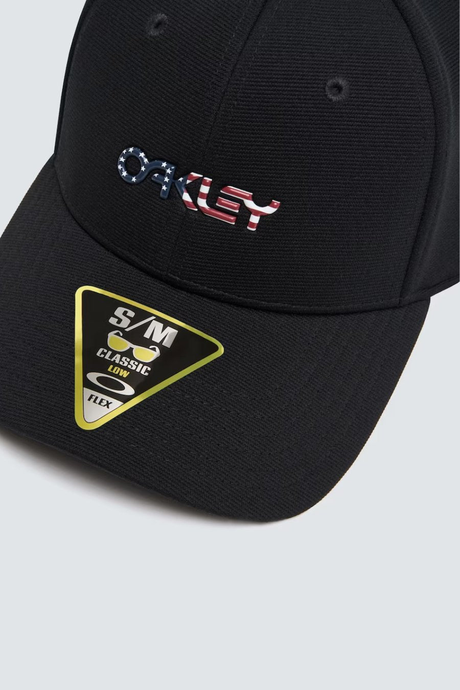 BONÉ OAKLEY 6 PANEL STRETCH METALLIC HAT PRETO C/ AMERICAN FLAG