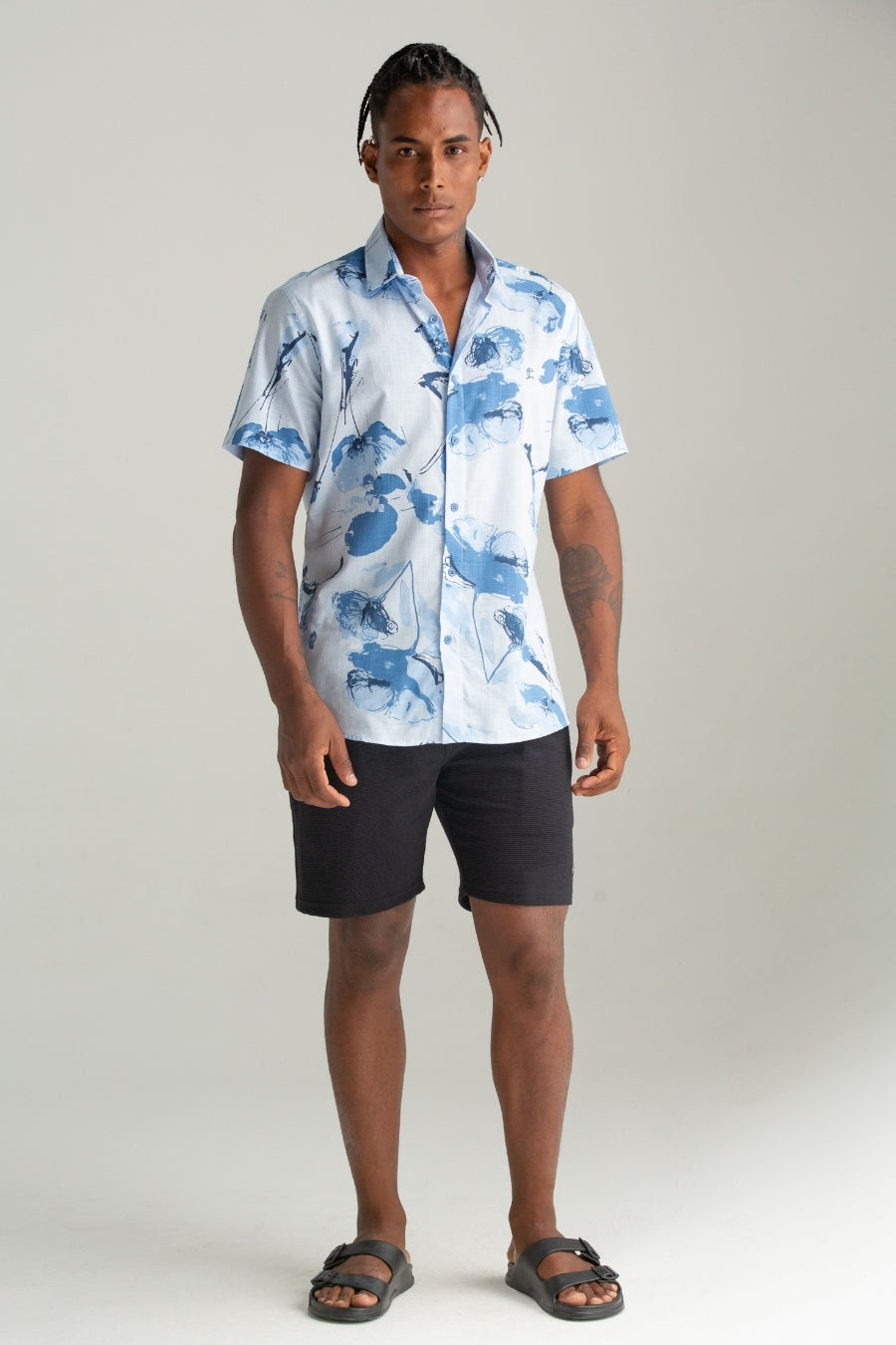 CAMISA DE TECIDO ESTAMPADO AZUL