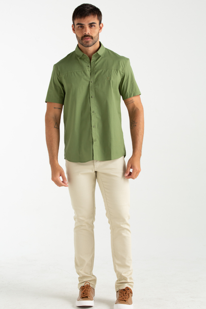 CAMISA DE TECIDO MAZZINI COM PALA VERDE MUSGO