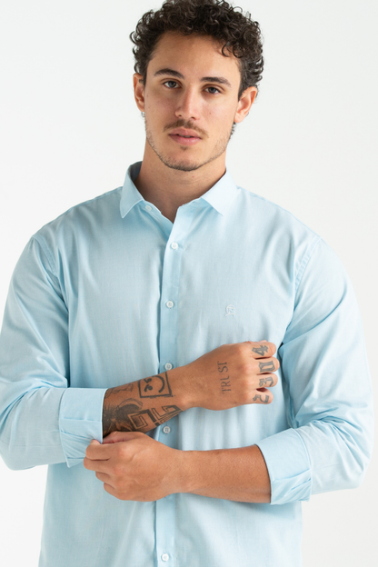 CAMISA DE TECIDO TAFETA AZUL CLARO