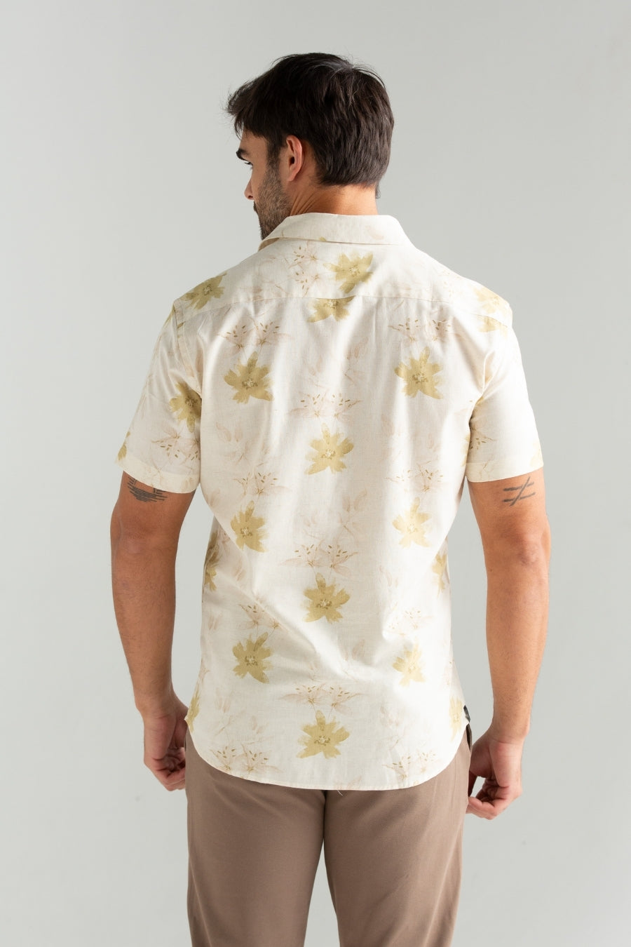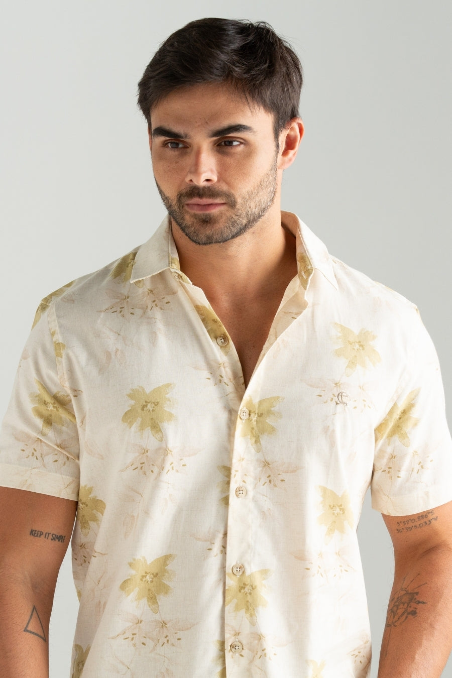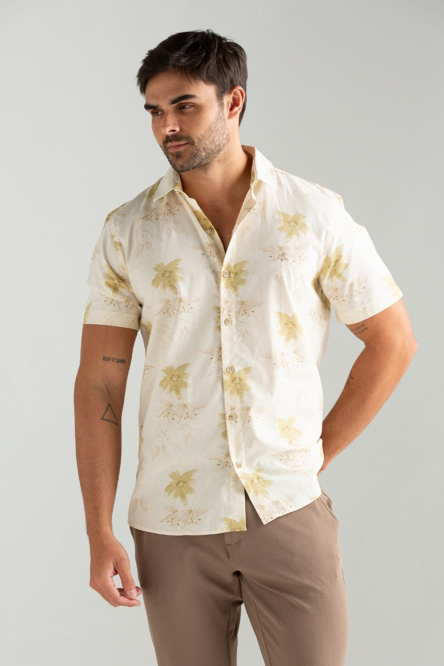 CAMISA LINHO MISTO ESTAMPADO BEGE