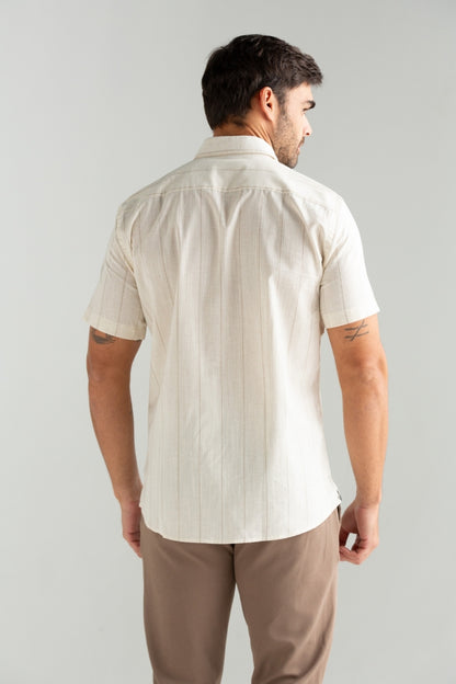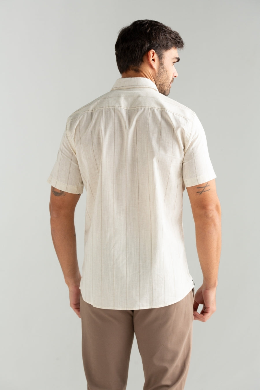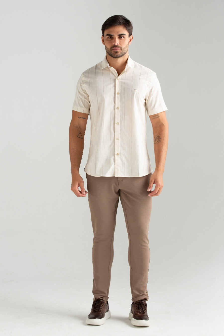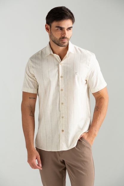 CAMISA LINHO MISTO LISTRADO CAQUI