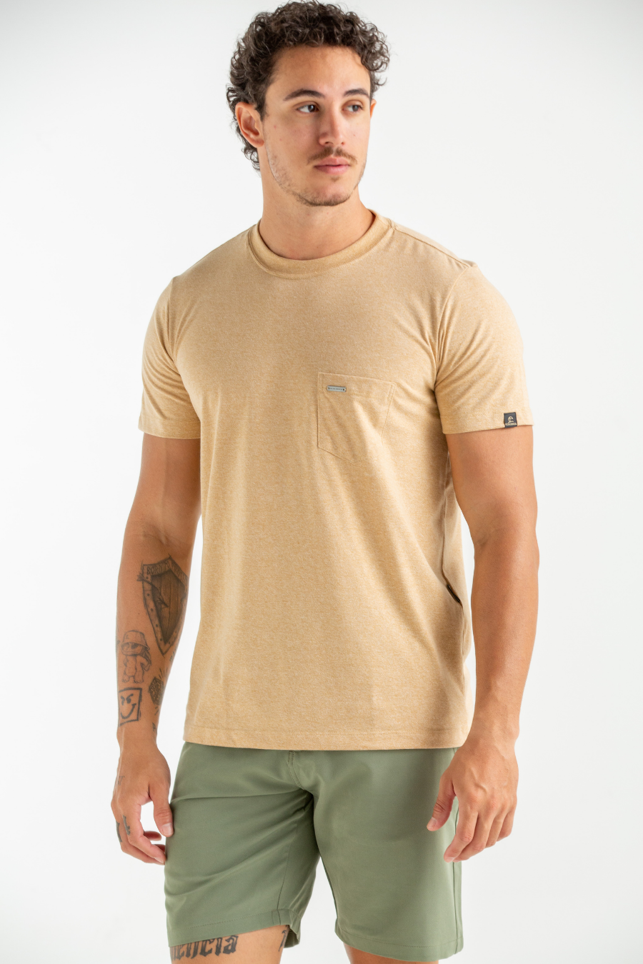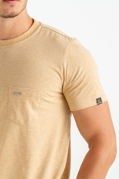 CAMISETA BASICA SLIM MOLINE COM BOLSO CAQUI