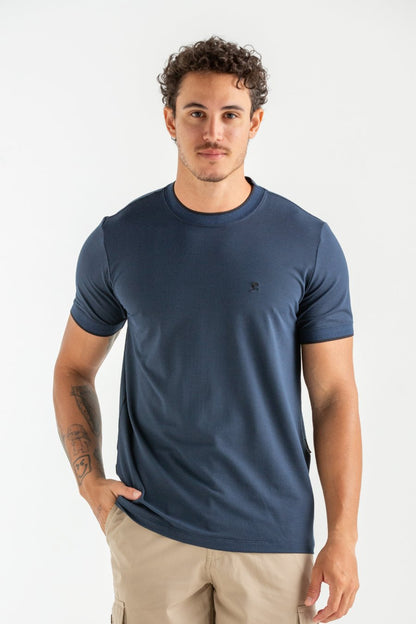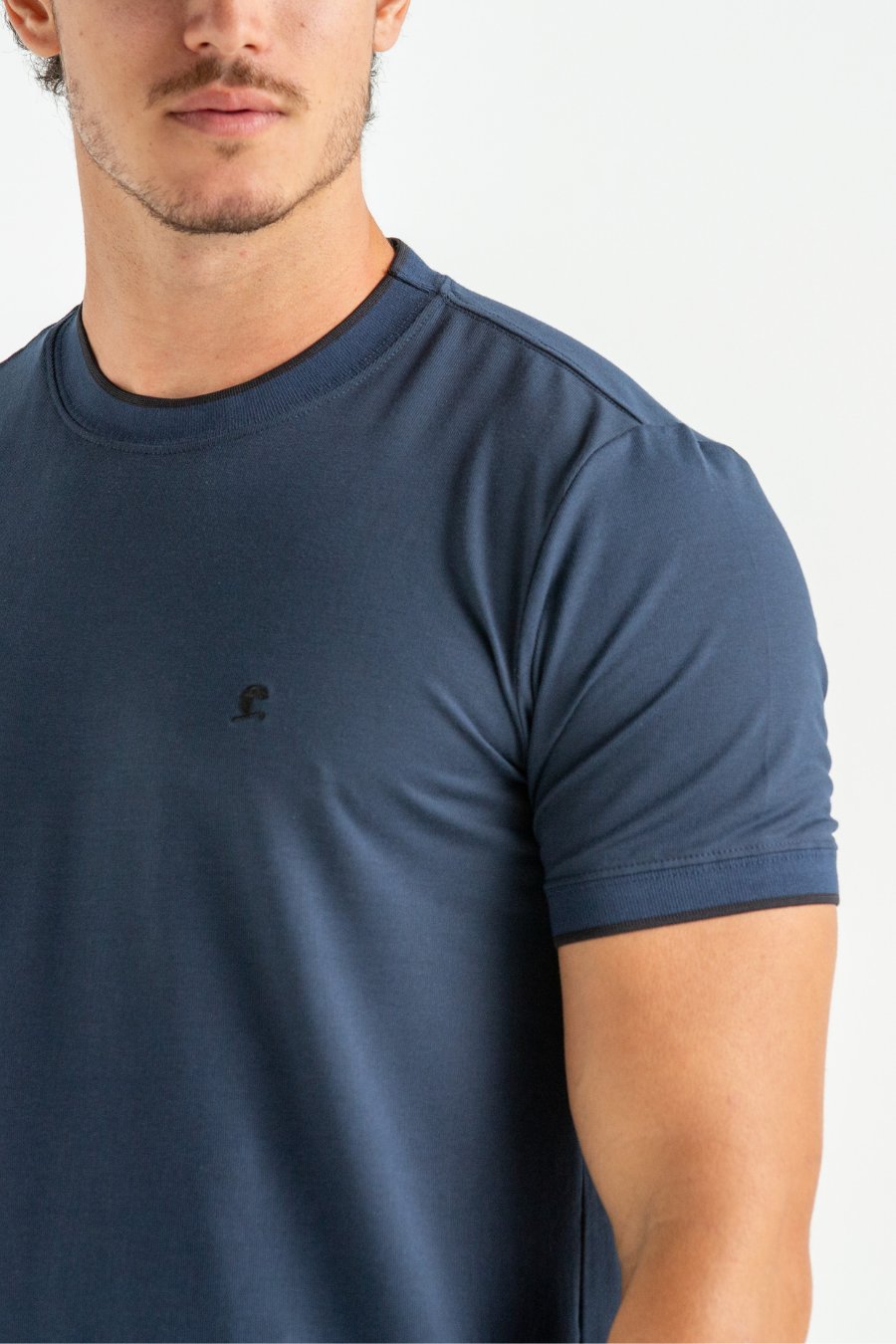 CAMISETA MALHA AGRADO COM GOLA E PUNHO MARINHO