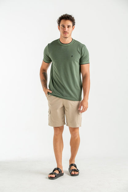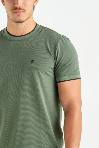 CAMISETA MALHA AGRADO COM GOLA E PUNHO VERDE