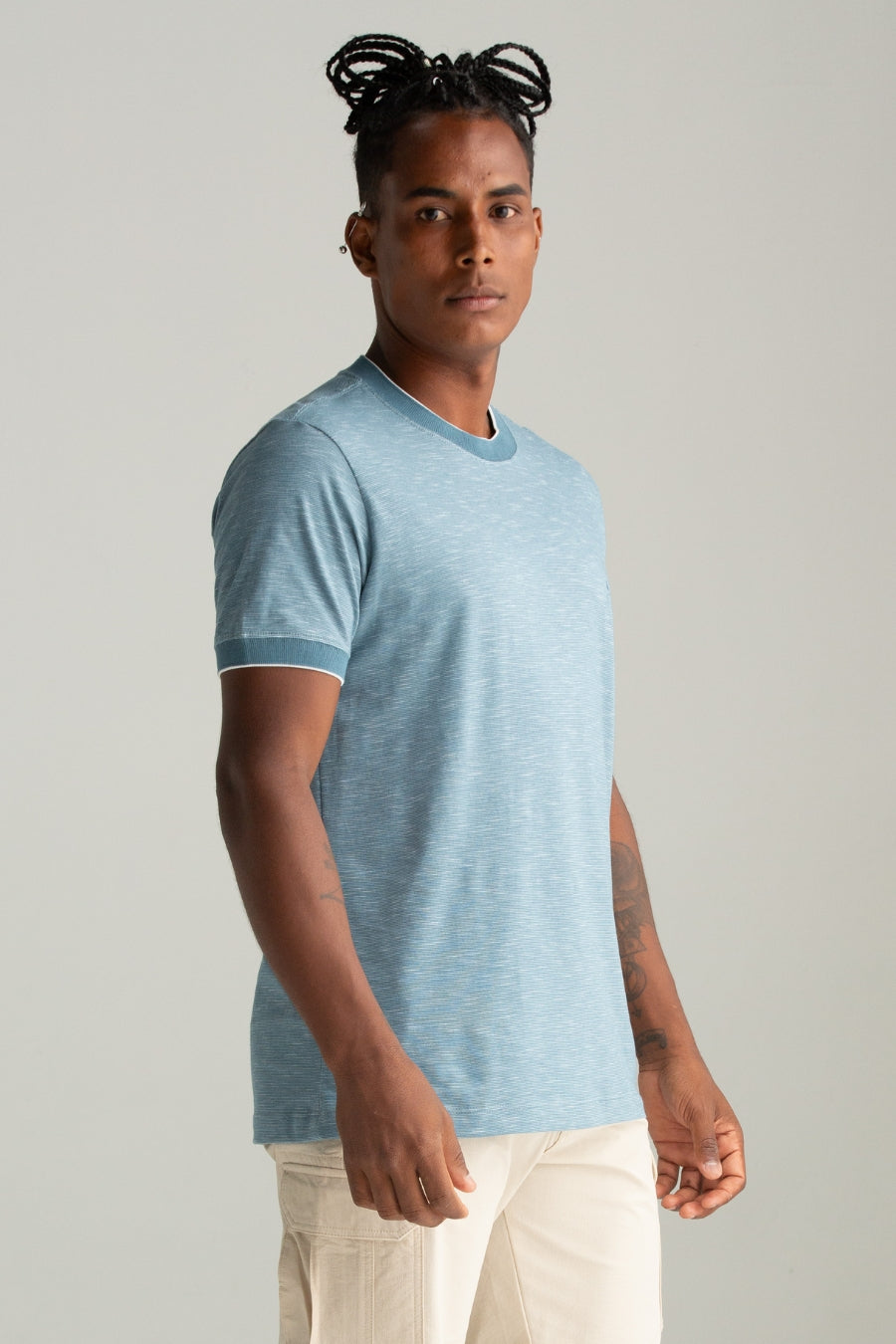 CAMISETA MALHA DIRT COM GOLA E PUNHO AZUL PETROLEO