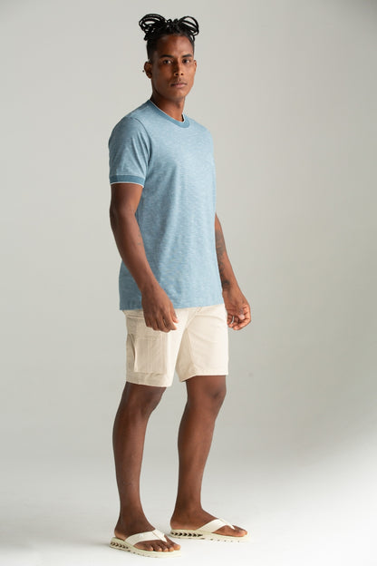 Camiseta confeccionada em malha Dirt, com toque extremamente macio e sensação fria ao vestir — ideal para os dias mais quentes. Possui gola e punhos canelados que adicionam sofisticação e um ar retrô à peça. O tecido levemente texturizado entrega um visual moderno, com caimento confortável e elegante. Perfeita para quem busca estilo e frescor com máximo conforto.