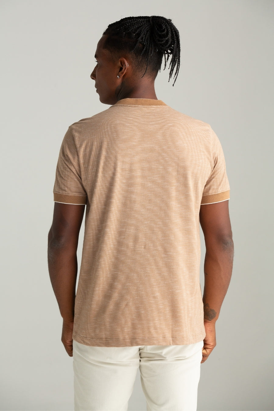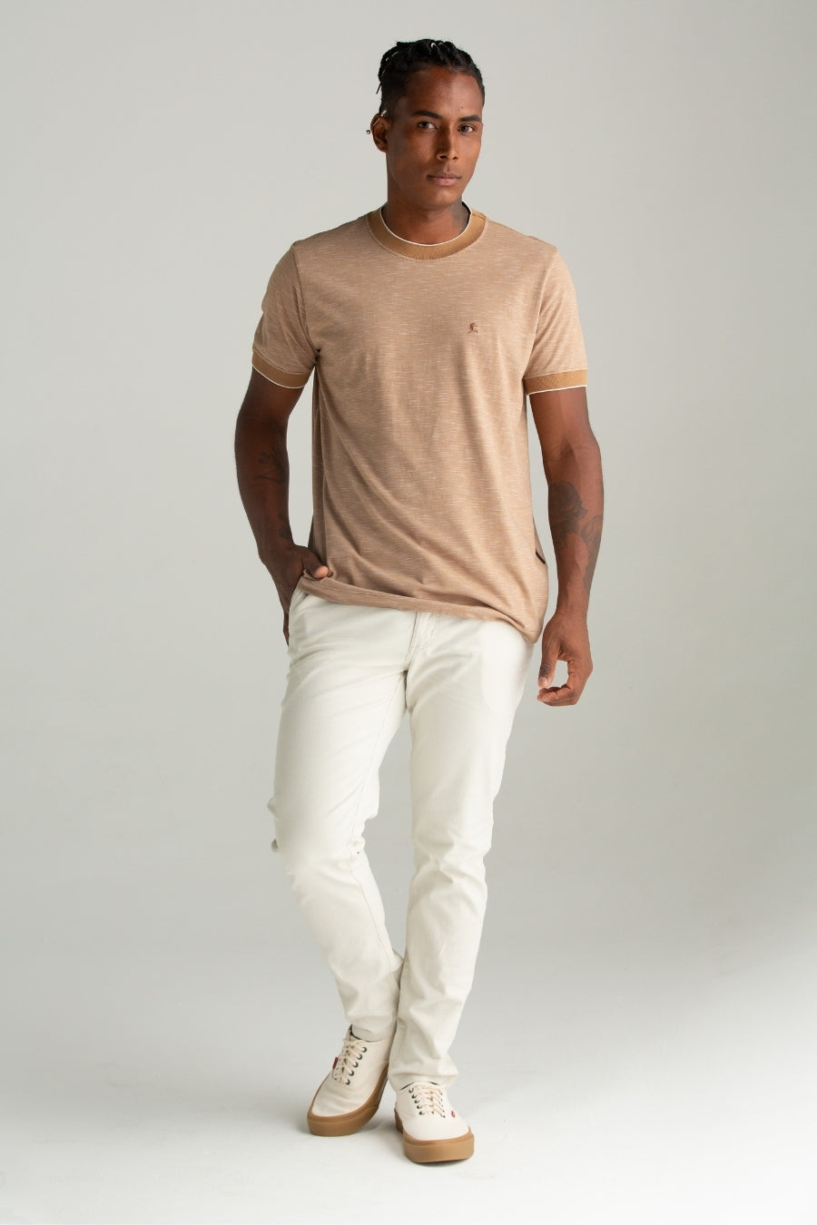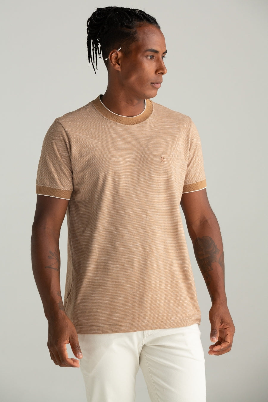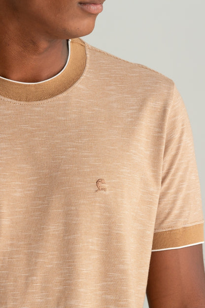 CAMISETA MALHA DIRT COM GOLA E PUNHO CAQUI