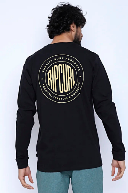 CAMISETA MANGA LONGA RIP CURL STAMPLE PRETO