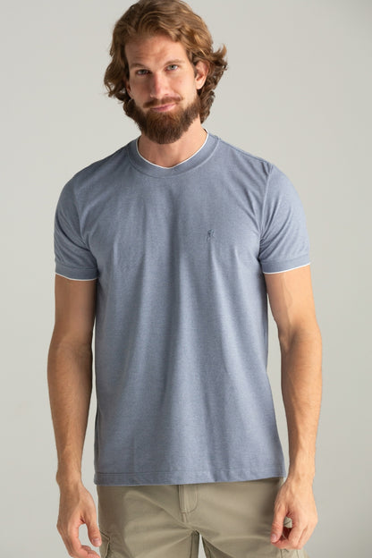 CAMISETA MOLINE COM GOLA E PUNHO AZUL