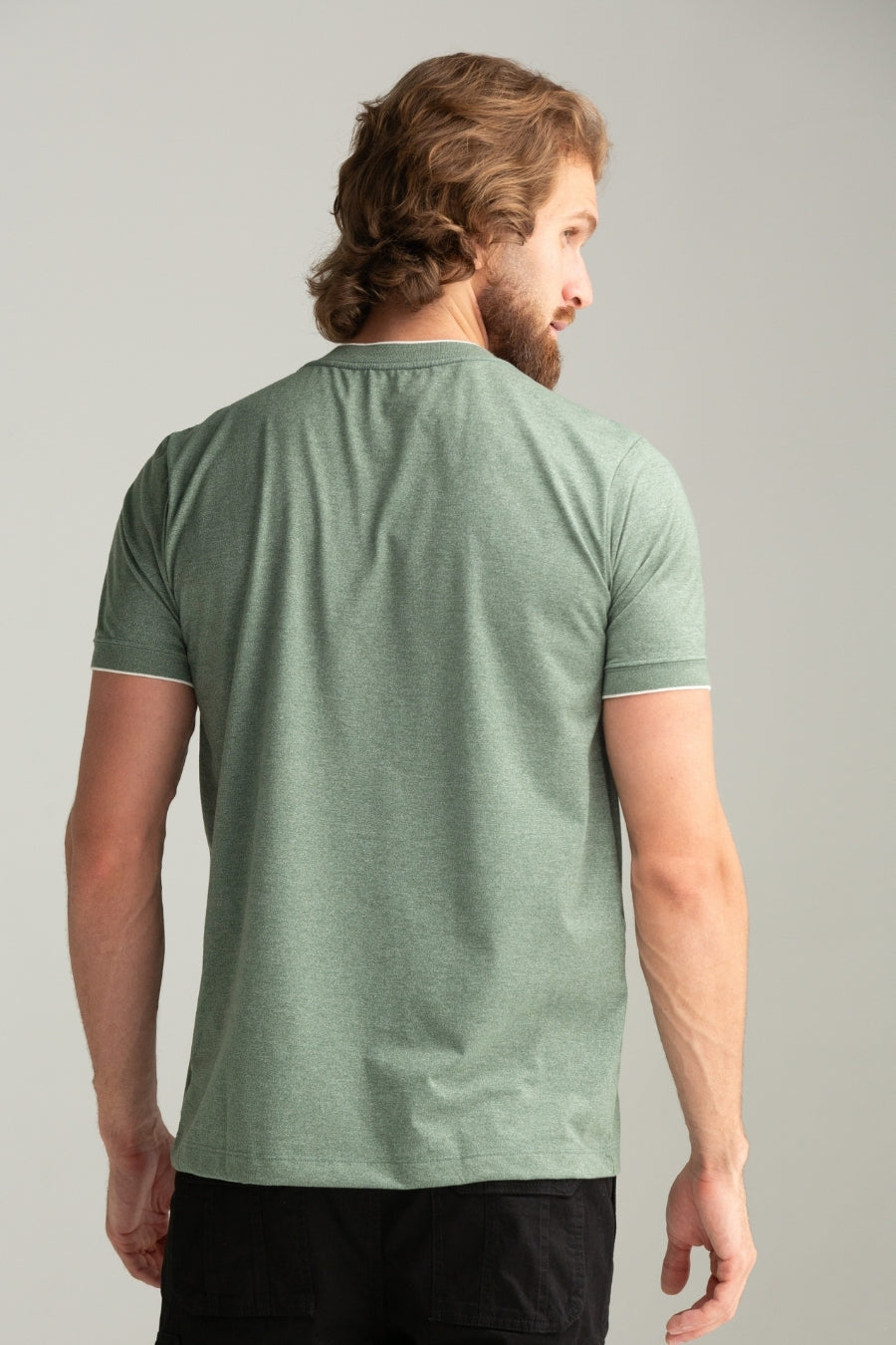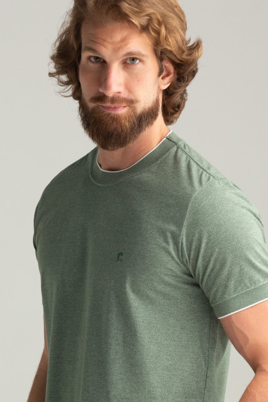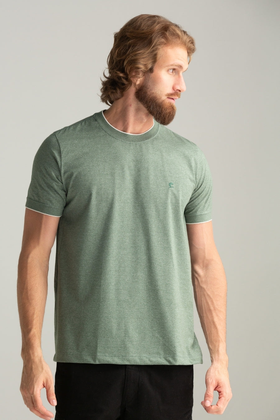 CAMISETA MOLINE COM GOLA E PUNHO VERDE CANA