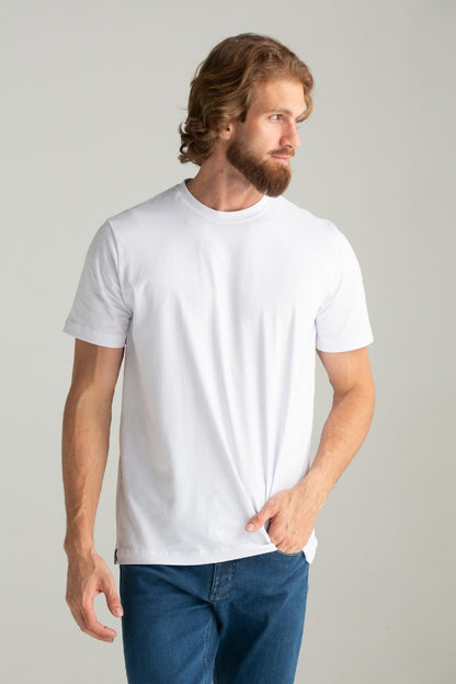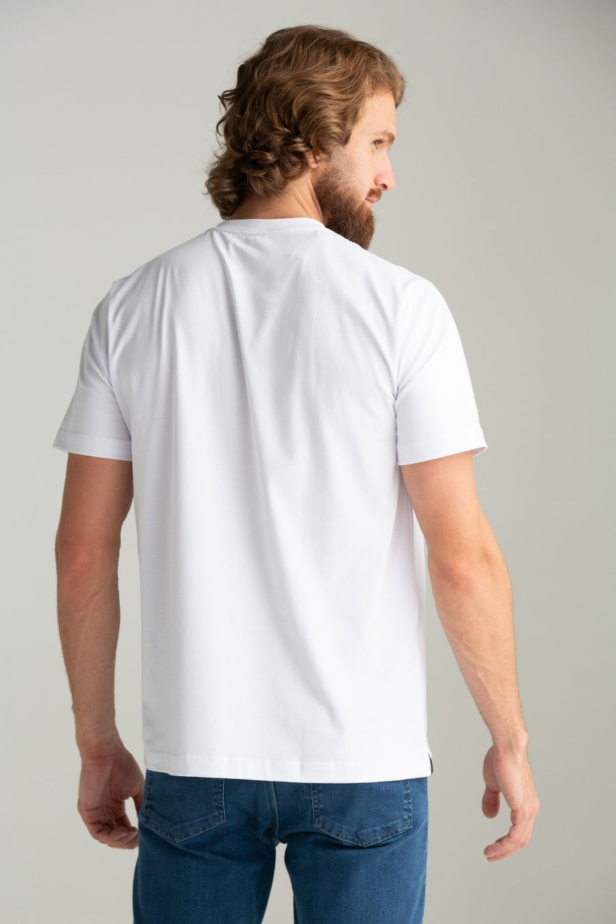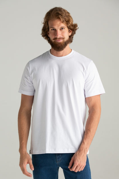 Camiseta confeccionada em Cotton Perseu Gold, uma malha premium com elastano que oferece toque extremamente macio, elasticidade e caimento impecável. Ideal para peças minimalistas e sofisticadas, seu brilho sutil e conforto elevam a experiência de uso. Conta com a tecnologia D+, que previne encolhimento e garante maior durabilidade mesmo após lavagens. Uma peça versátil, fluida e refinada, feita para quem valoriza qualidade em cada detalhe.