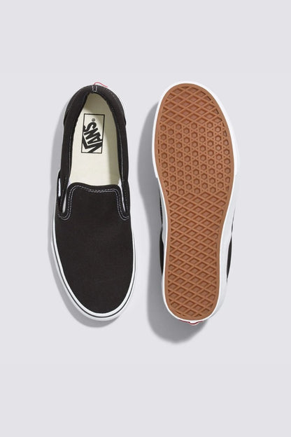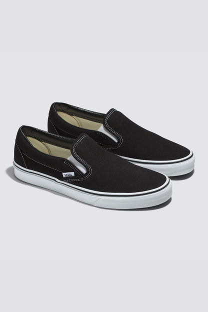 Em 1977, o tênis Slip-On, conhecido originalmente como Vans #98 é apresentado e com a ajuda de skatistas e atletas de BMX, virou uma febre no sul da Califórnia. Anos depois, ganhou atenção e apelo internacional quando apareceu nos pés de Jeff Spiccoli, personagem interpretado por Sean Penn no filme Fast Times at Ridgemont High, de 1982, tornando-se um dos maiores ícones da Vans. O Tênis Slip-On Black possui perfil baixo, cabedal de lona têxtil resistente na cor preta, cano acolchoado, elástico nas laterais, viras laterais de borracha na cor branca com biqueiras reforçadas para suportar o desgaste por repetição e a original sola de borracha Waffle exclusiva Vans.