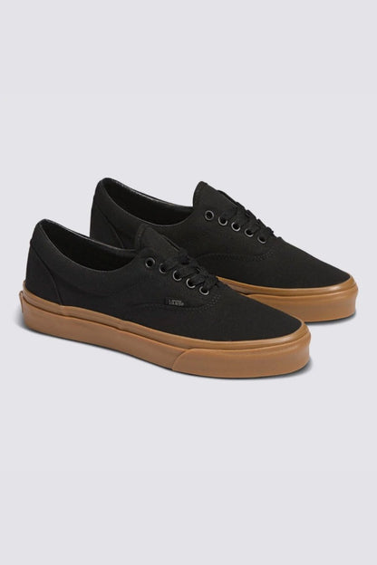 O tênis Vans Era foi o primeiro modelo projetado para skatistas e pensado por skatistas. Introduzido em 1976 e originalmente chamado Vans #95, o Vans Era tornou-se popular pelos lendários Z-Boys e continua sendo o tênis de escolha para skatistas, surfistas e pessoas criativas em todo o mundo. O Tênis Era Black Classic Gum possui cabedal de lona resistente na cor preta, viras laterais de borracha na cor goma com biqueiras reforçadas para suportar o desgaste por repetição, ilhós de metal, colarinho acolchoado para dar apoio e flexibilidade e a original sola Waffle de borracha original Vans.