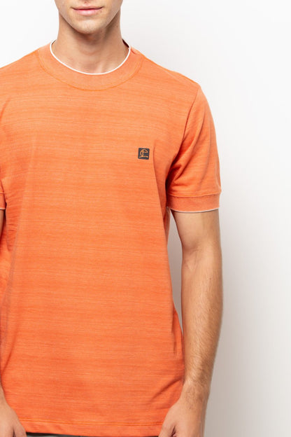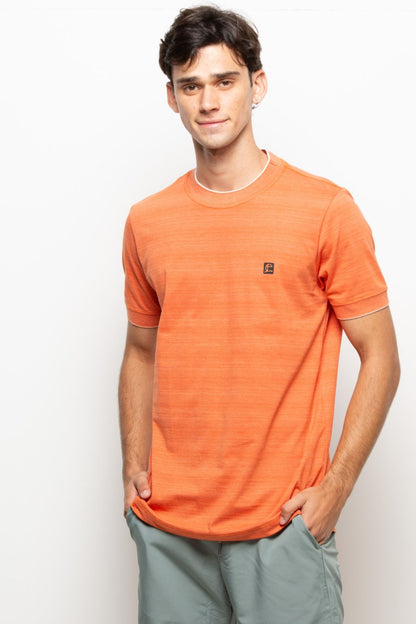 CAMISETA SUNSET COM GOLA E PUNHO TELHA