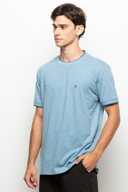 CAMISETA MOLINE COM GOLA E PUNHO VERDE