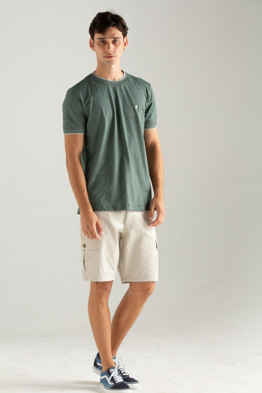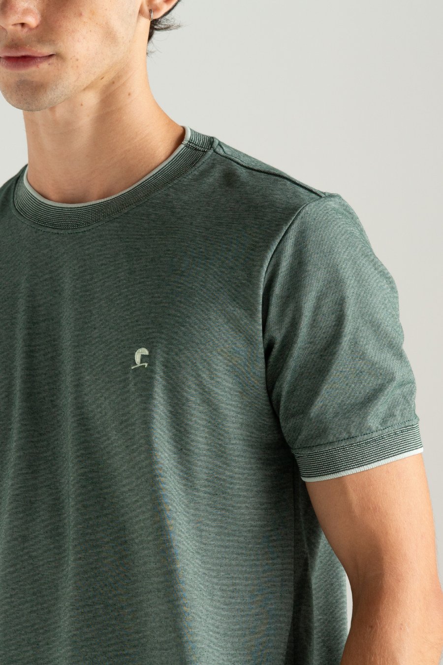 CAMISETA ROCKET LISO COM GOLA E PUNHO VERDE
